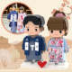 Figuras De Ladrillo Personalizadas De Cuerpo Completo Para 2 Personas Personalizables, Kimono Azul Oscuro Y Celeste Para Parejas