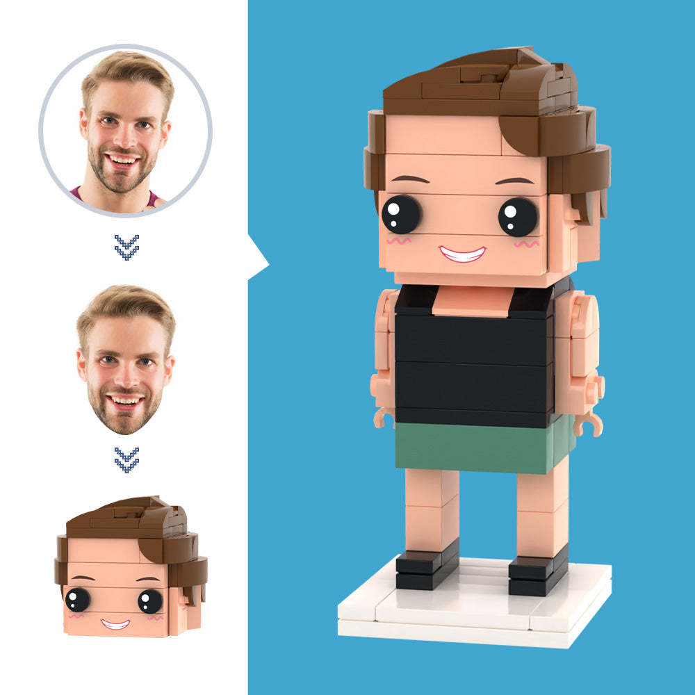 Figuras de camiseta negra con cabeza personalizada, juguete de bloques de partículas pequeñas, regalos de arte de ladrillo personalizables