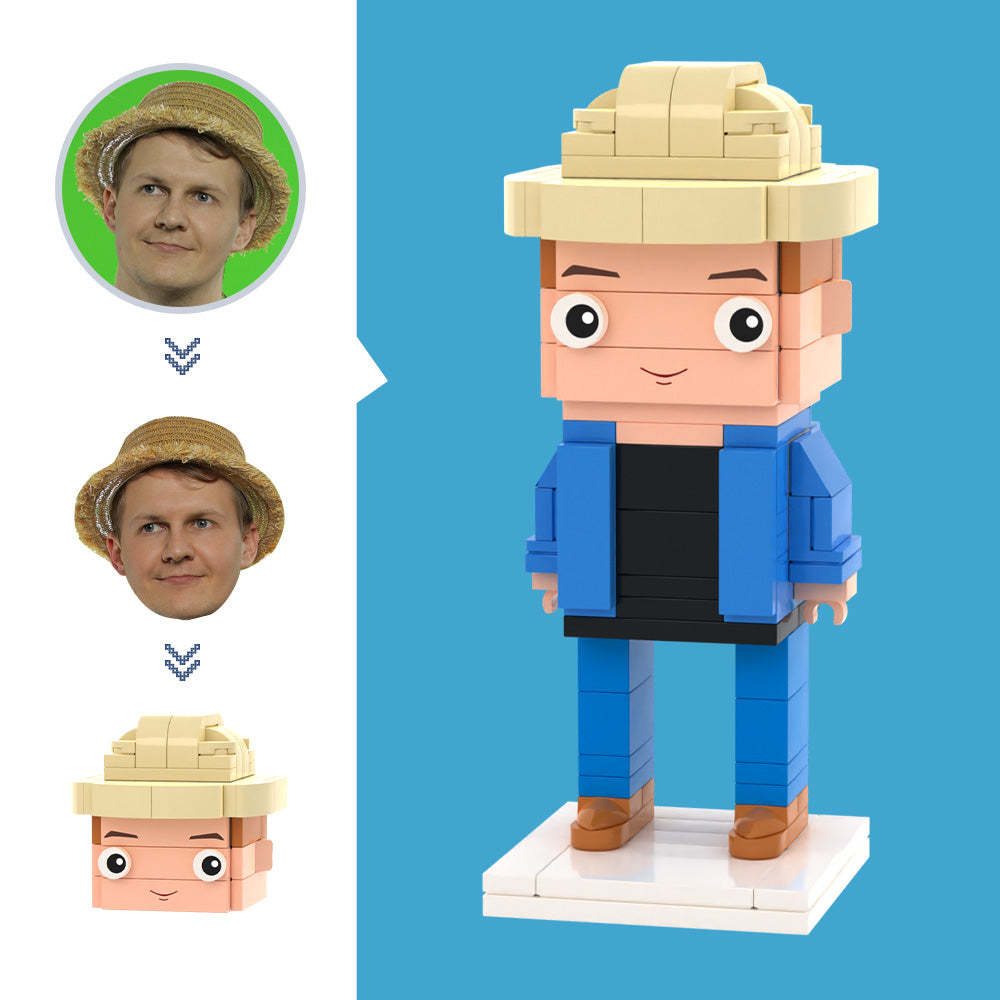 Figuras de mezclilla azul con cabeza personalizada, juguete de bloques de partículas pequeñas, regalos de arte de ladrillo personalizables